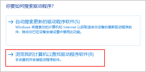 2. 在“你要如何搜索驱动程序”下点击“浏览我的计算机查找驱动程序软件”。