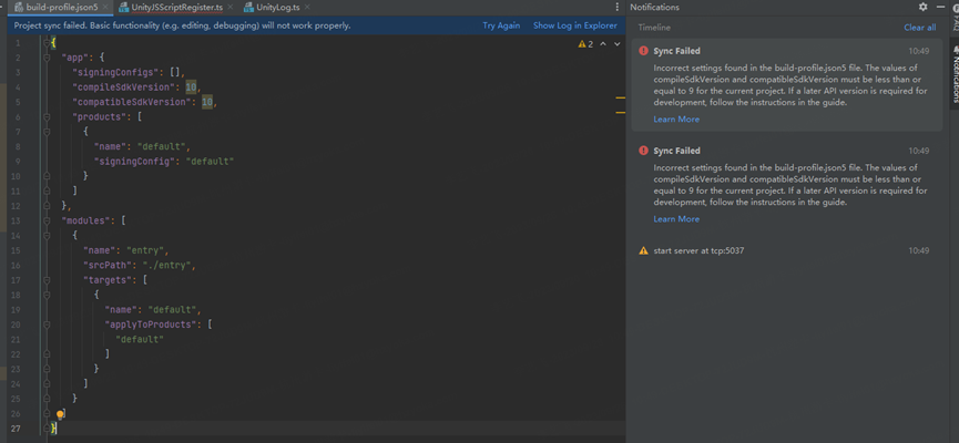 从团结引擎导出的HarmonyOS工程,在DevEco Studio中一打开就出现如下报错: